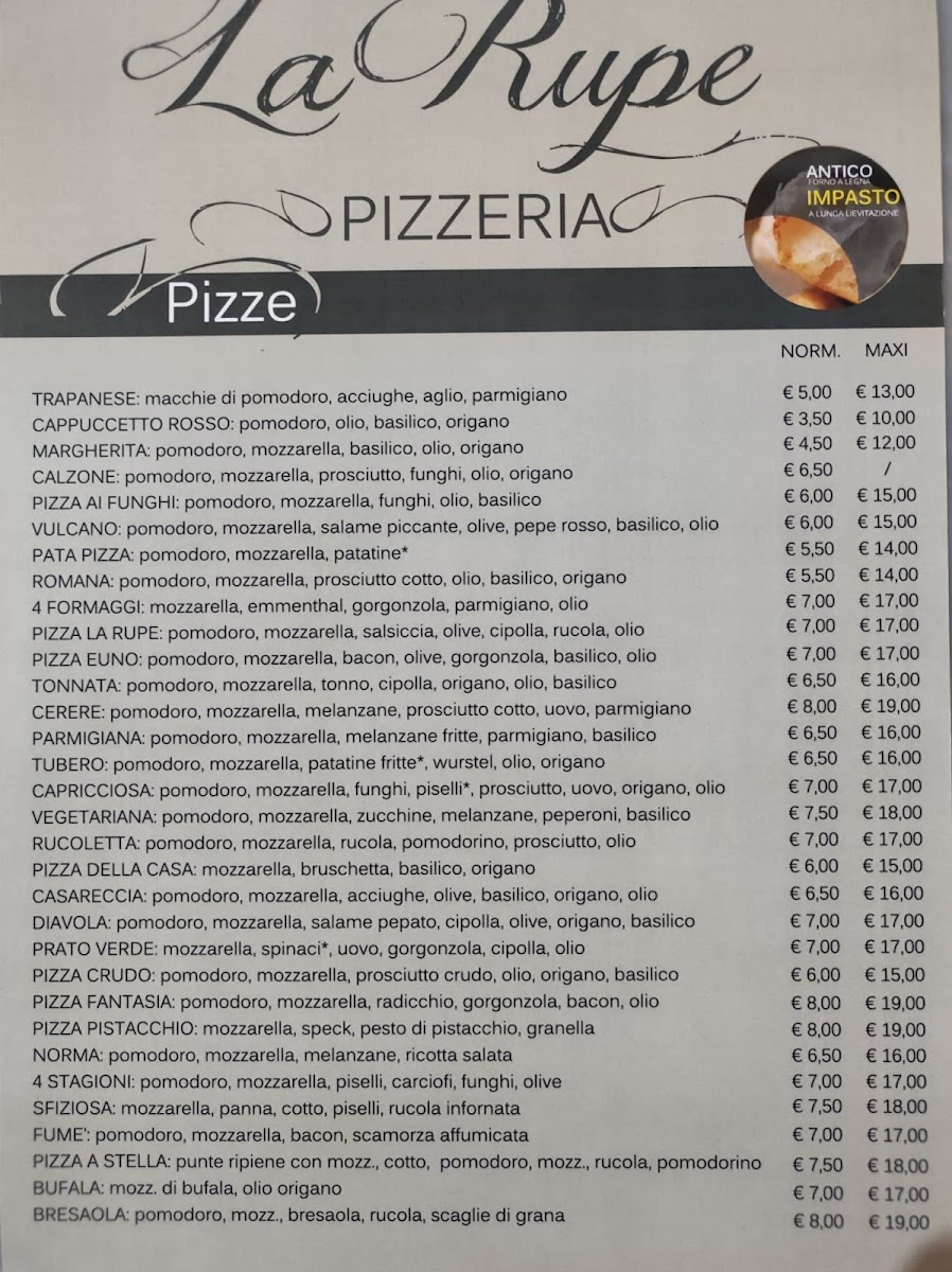 Welcome to La Rupe, a charming pizzeria nestled in the scenic surroundings of Enna, Italy. Situated near the majestic Castello di Lombardia, this delightful eatery offers an extensive selection of pizzas that celebrate the rich flavors of Sicilian cuisine.